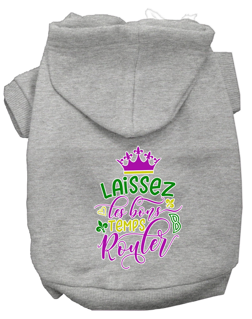 Laissez Les Bons Temps Rouler Screen Print Mardi Gras Dog Hoodie Grey L