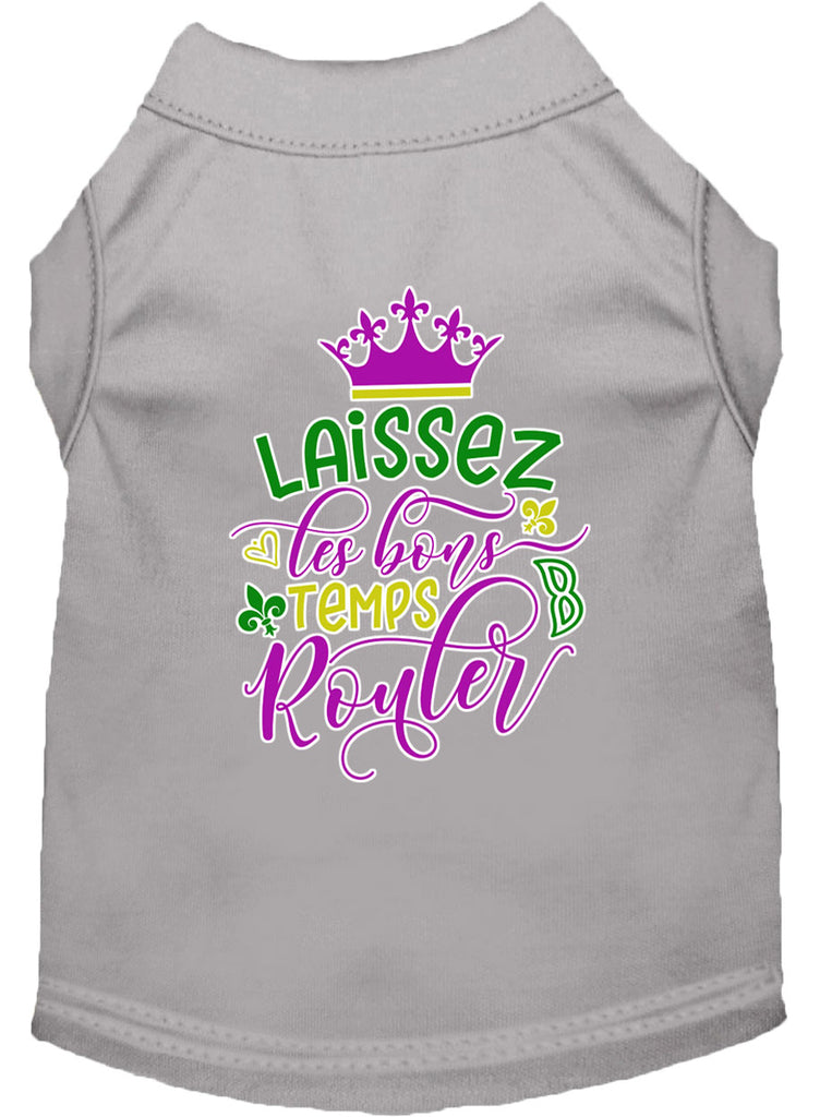 Laissez Les Bons Temps Rouler Screen Print Mardi Gras Dog Shirt Grey Med