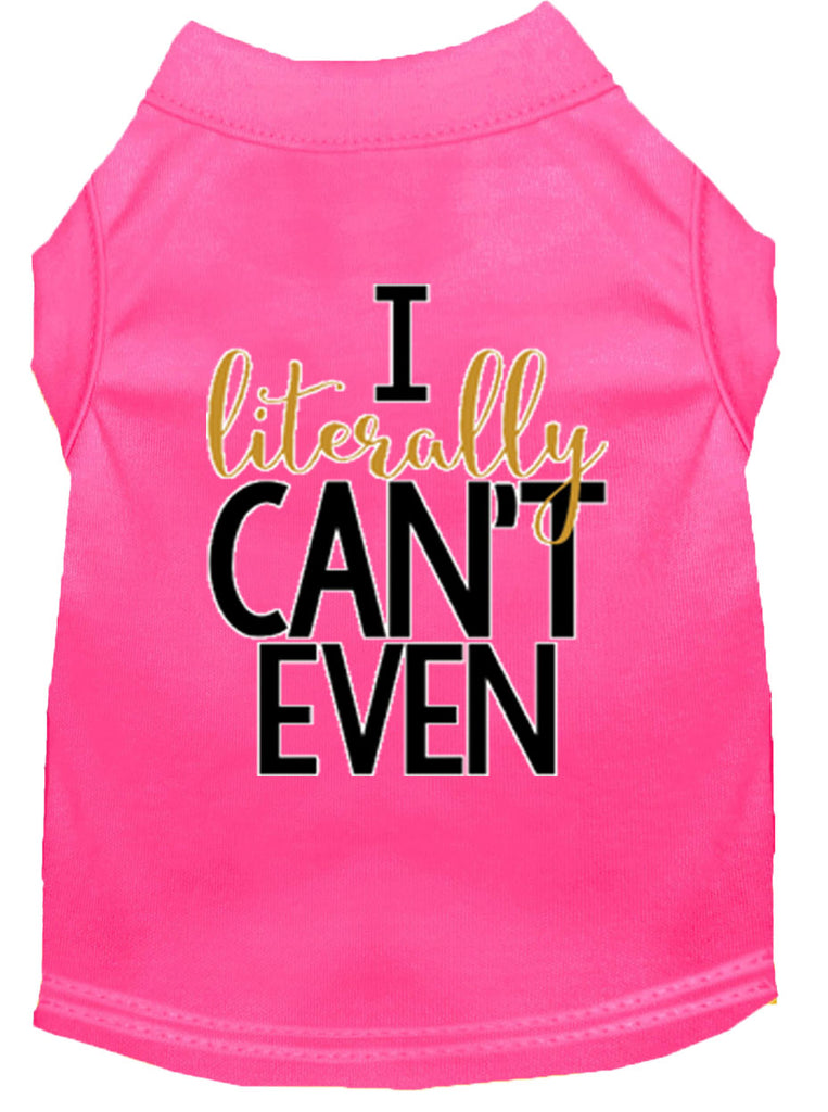 Literally Can't Even Screen Print Dog Shirt Bright Pink Lg