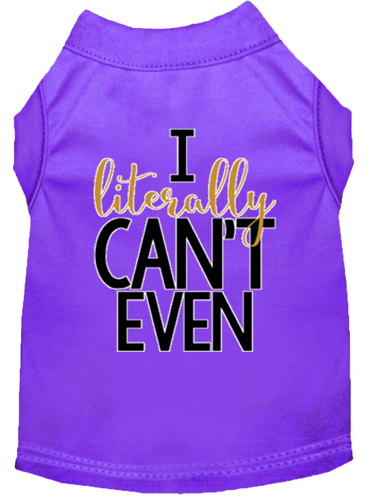 Literally Can't Even Screen Print Dog Shirt Purple Lg