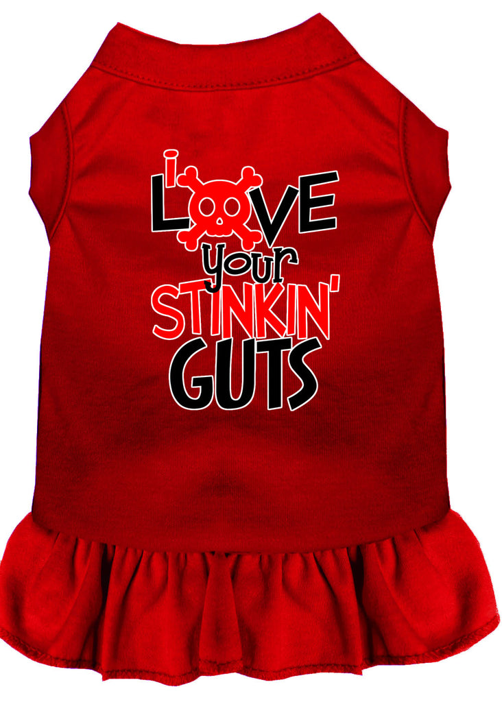 Love Your Stinkin Guts Screen Print Dog Dress Red Med