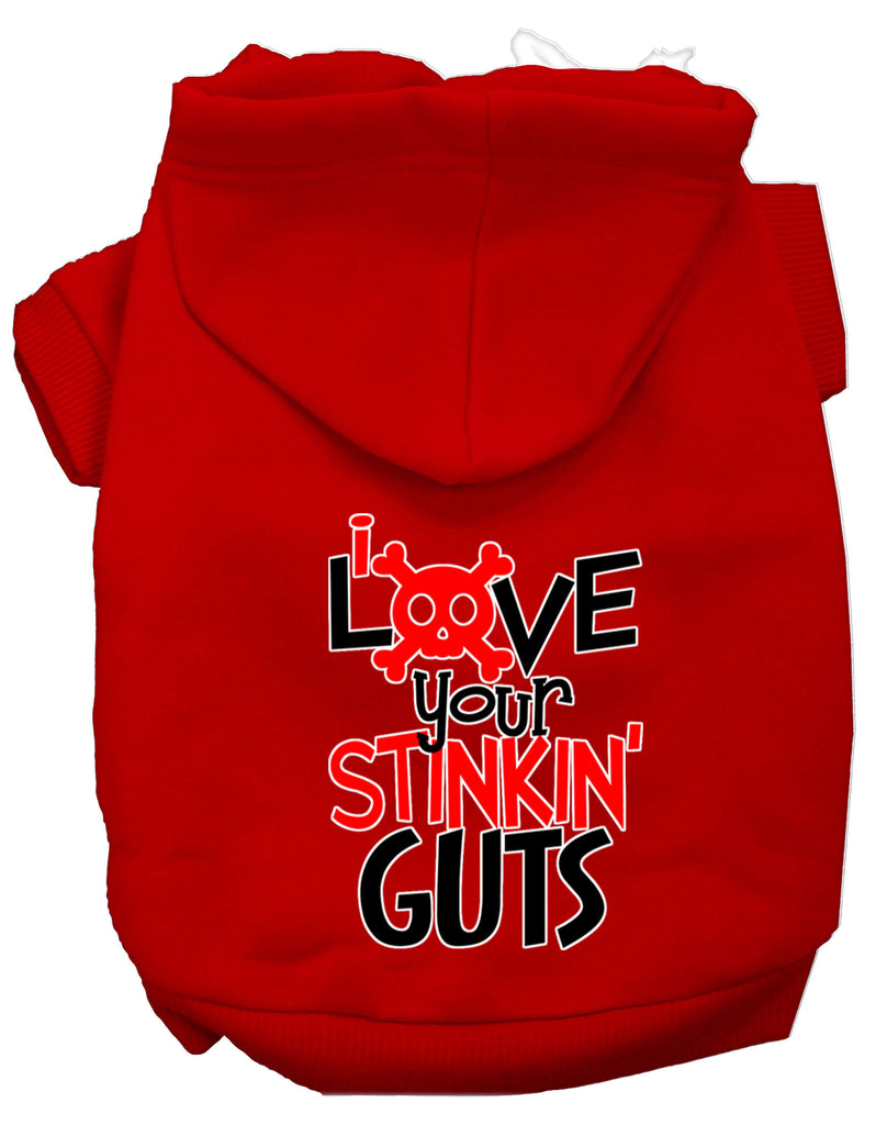 Love Your Stinkin Guts Screen Print Dog Hoodie Red Xl