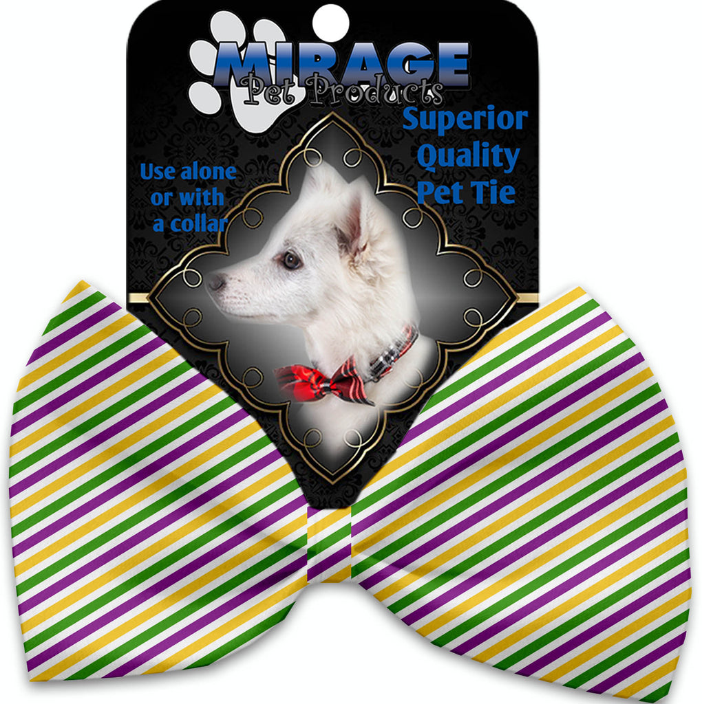 Mardi Gras Stripes Pet Bow Tie Collar Accessory With Velcro