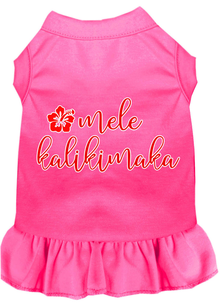 Mele Kalikimaka Screen Print Dog Dress Bright Pink Med