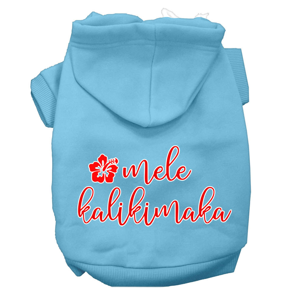 Mele Kalikimaka Screen Print Dog Hoodie Baby Blue Xs