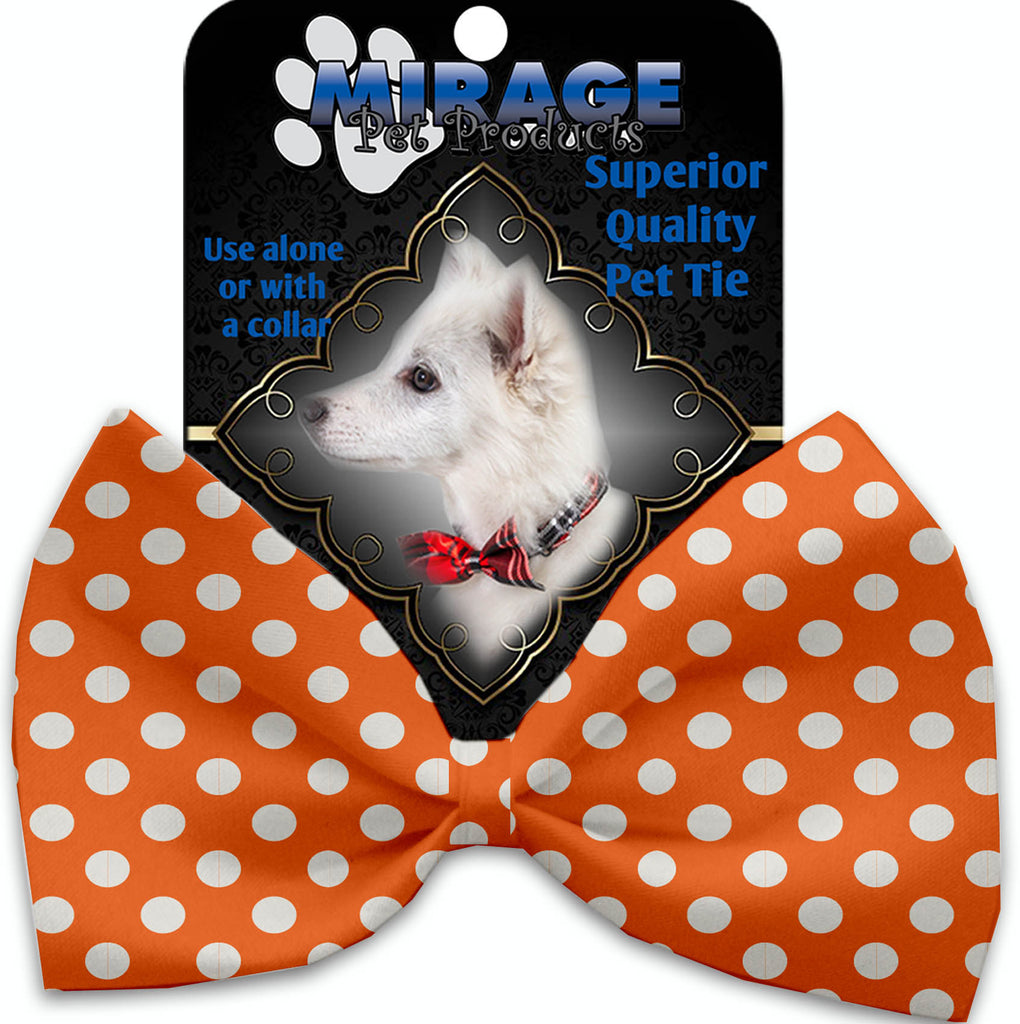 Melon Orange Swiss Dots Pet Bow Tie Collar Accessory With Velcro