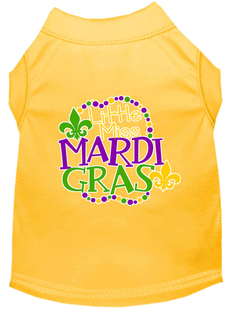 Miss Mardi Gras Screen Print Mardi Gras Dog Shirt Yellow Xs