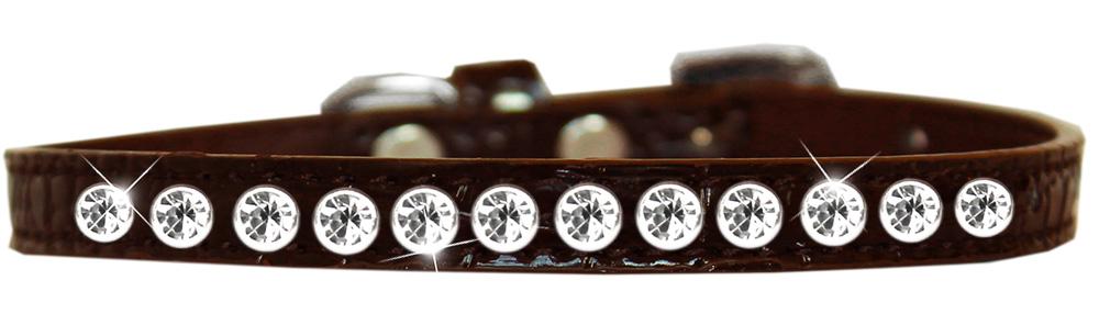 One Row Clear Jewel Croc Dog Collar Chocolate Size 14