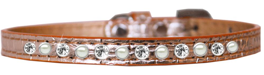 Pearl And Clear Jewel Croc Dog Collar Copper Size 12