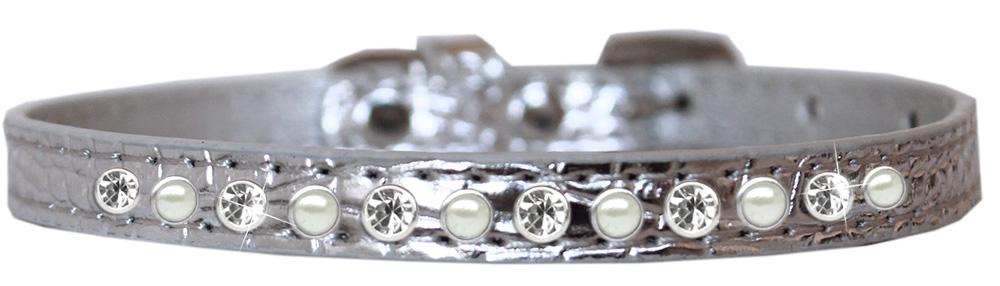 Pearl And Clear Jewel Croc Dog Collar Silver Size 16