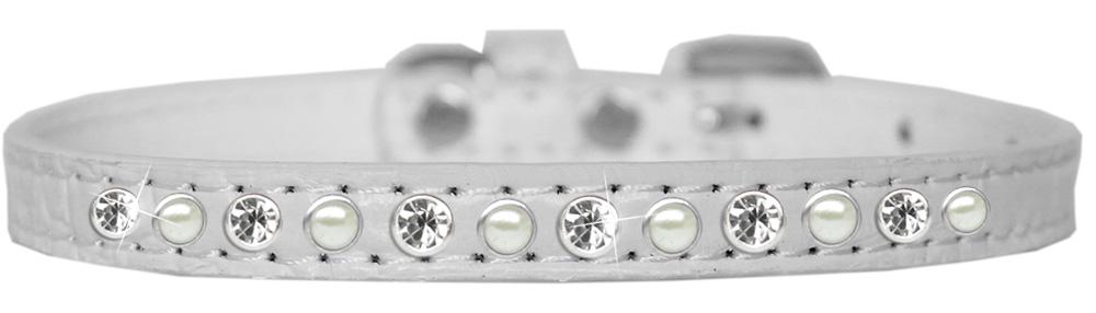 Pearl And Clear Jewel Croc Dog Collar White Size 12
