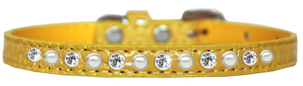 Pearl And Clear Jewel Croc Dog Collar Yellow Size 14