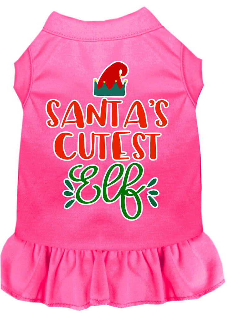 Santa's Cutest Elf Screen Print Dog Dress Bright Pink Med