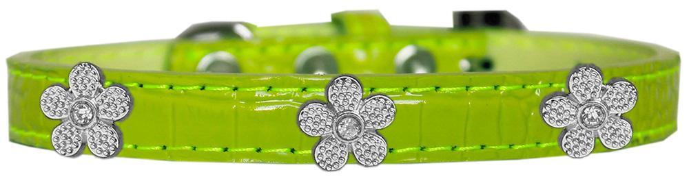 Silver Flower Widget Croc Dog Collar Lime Green Size 18