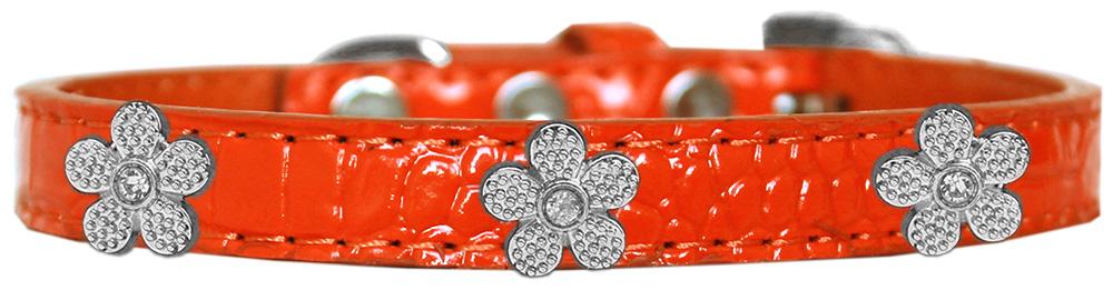 Silver Flower Widget Croc Dog Collar Orange Size 10