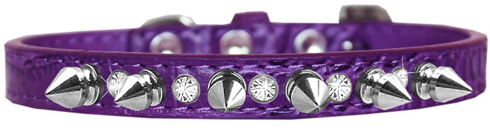 Silver Spike And Clear Jewel Croc Dog Collar Purple Size 14