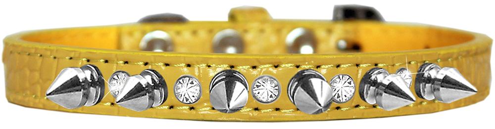Silver Spike And Clear Jewel Croc Dog Collar Yellow Size 10