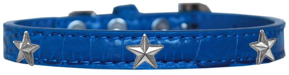 Silver Star Widget Croc Dog Collar Blue Size 16