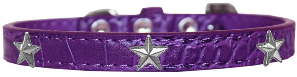 Silver Star Widget Croc Dog Collar Purple Size 18