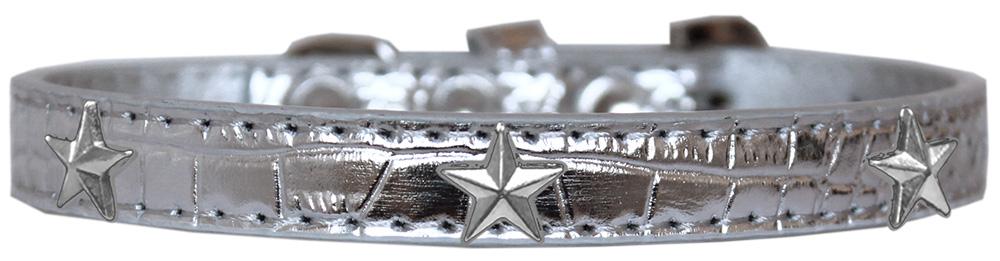 Silver Star Widget Croc Dog Collar Silver Size 12
