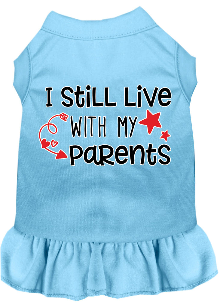 Product Summary : New/Dresses/Still Live with my Parents Screen Print Dog Dress@Apparel/Dog Dresses/Screen Print Dresses/Still Live with my Parents Screen Print Dog Dress@Wholesale Dog Clothes/Dog Dresses/Screen Print Dresses/Still Live with my Parents Screen Print Dog Dress