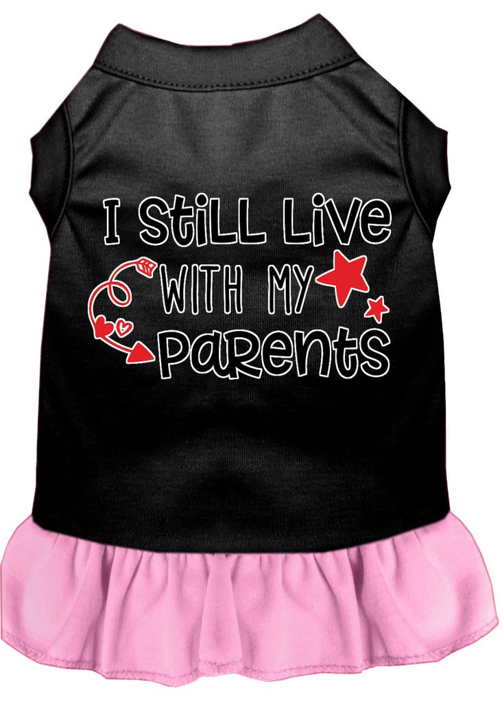 Still Live With My Parents Screen Print Dog Dress Black With Light Pink Sm (10)