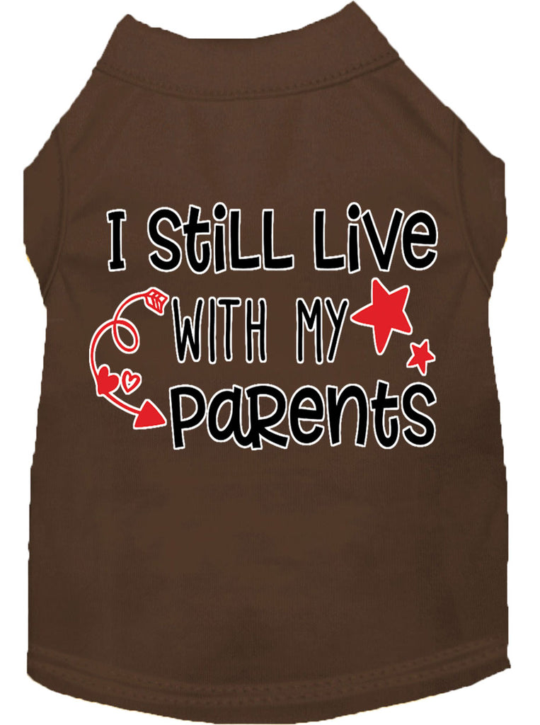 Still Live With My Parents Screen Print Dog Shirt Brown Lg