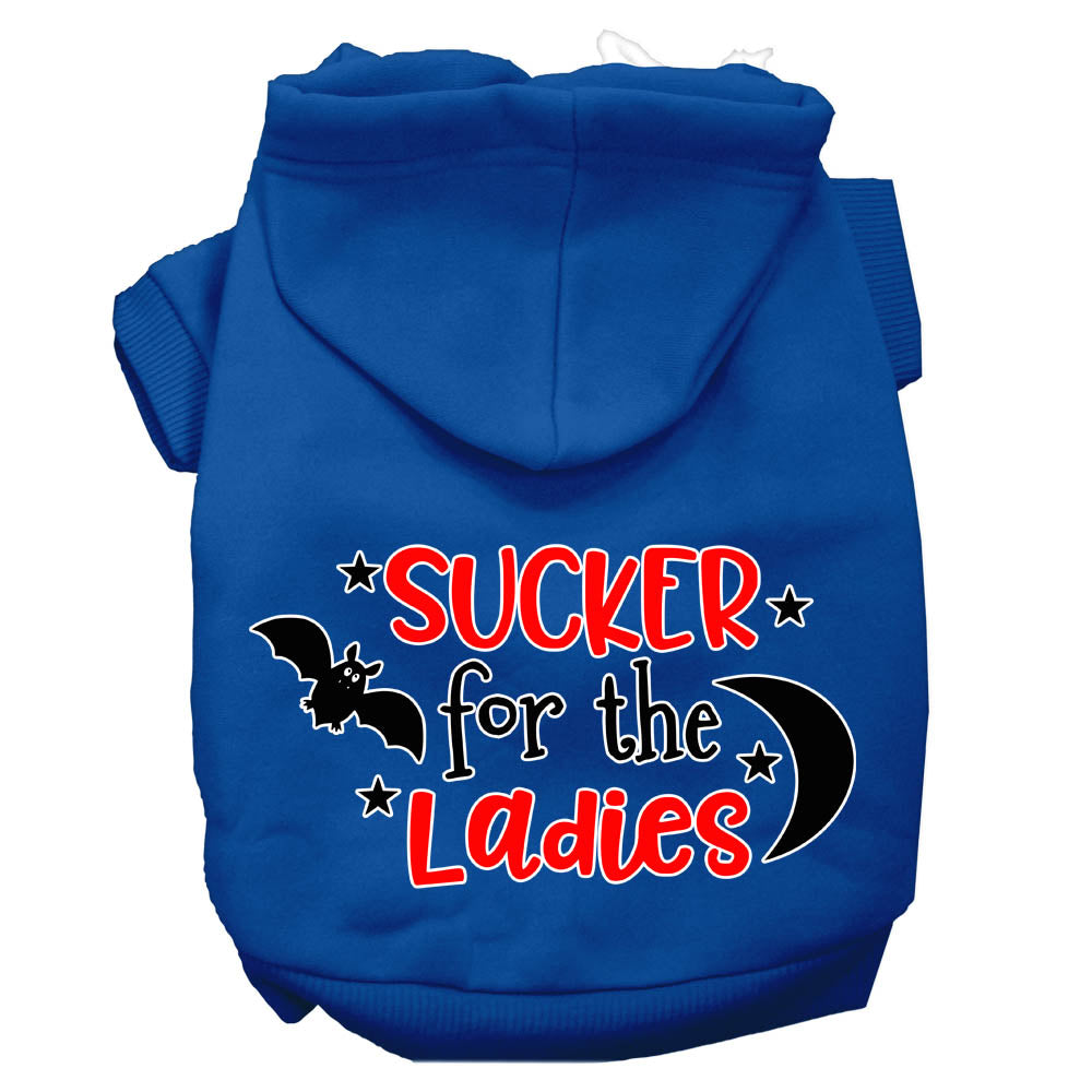 Sucker For The Ladies Screen Print Dog Hoodie Blue M