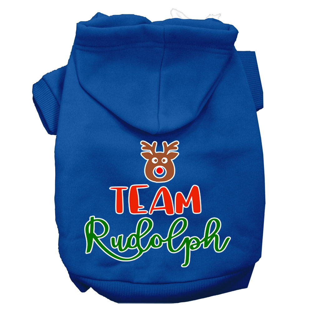 Team Rudolph Screen Print Dog Hoodie Blue L