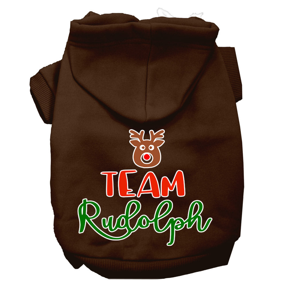 Team Rudolph Screen Print Dog Hoodie Brown Xl