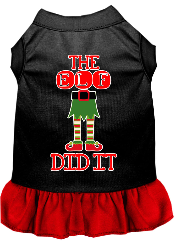 The Elf Did It Screen Print Dog Dress Black With Red Xl
