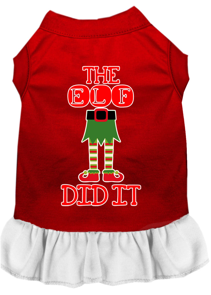 The Elf Did It Screen Print Dog Dress Red With White Xxl