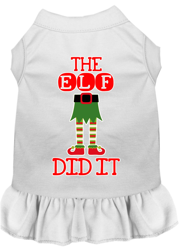 The Elf Did It Screen Print Dog Dress White Sm