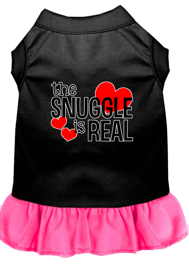 The Snuggle Is Real Screen Print Dog Dress Black With Bright Pink Xs