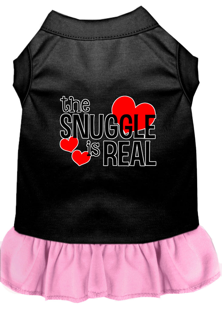 The Snuggle Is Real Screen Print Dog Dress Black With Light Pink Xxl
