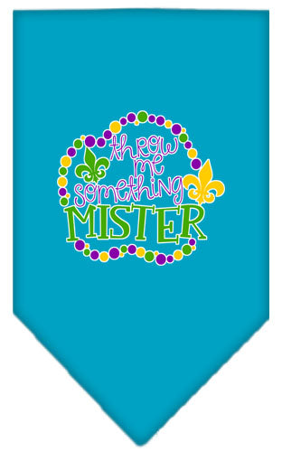 Throw Me Something Screen Print Mardi Gras Bandana Turquoise Large