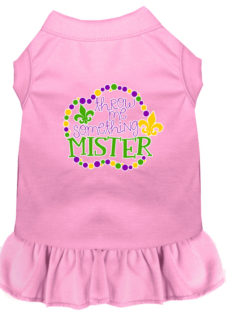 Throw Me Something Screen Print Mardi Gras Dog Dress Light Pink Lg