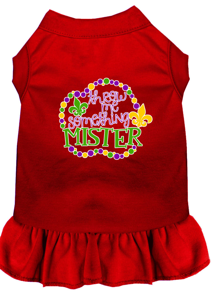 Throw Me Something Screen Print Mardi Gras Dog Dress Red Xs