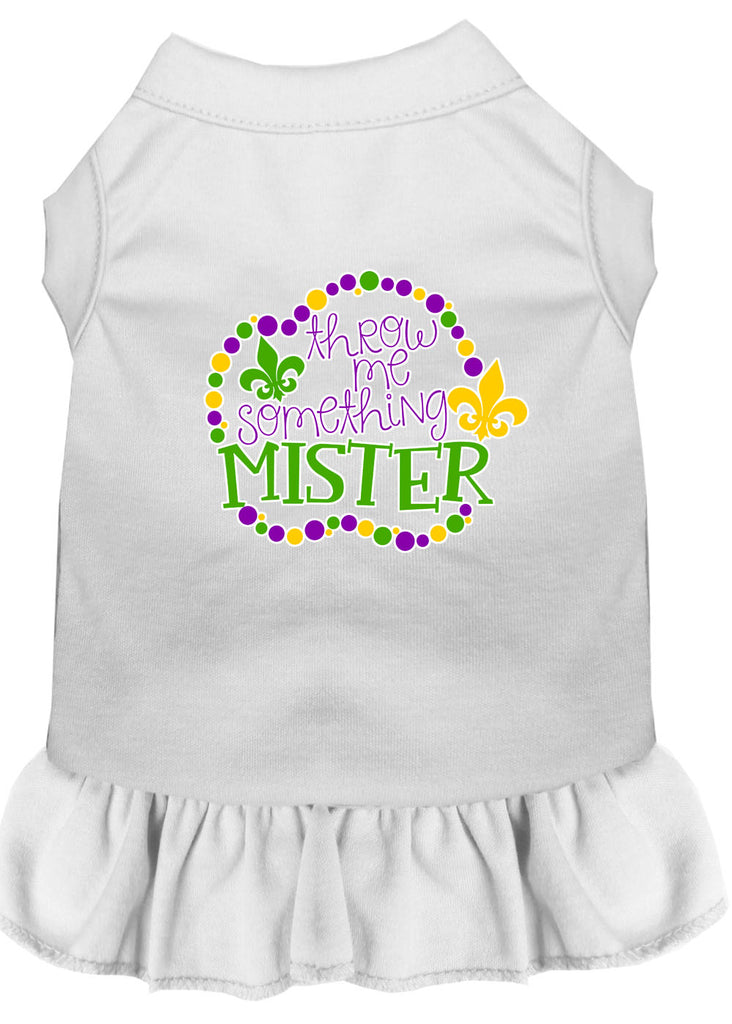 Throw Me Something Screen Print Mardi Gras Dog Dress White Sm