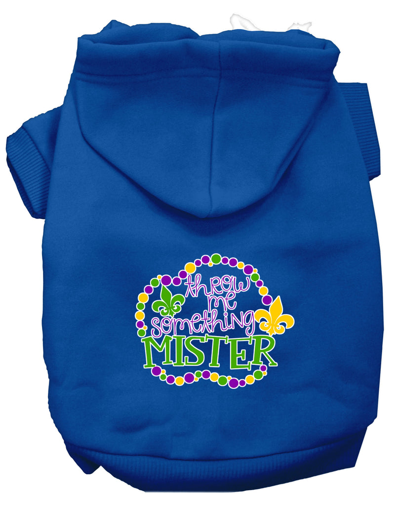 Throw Me Something Screen Print Mardi Gras Dog Hoodie Blue M