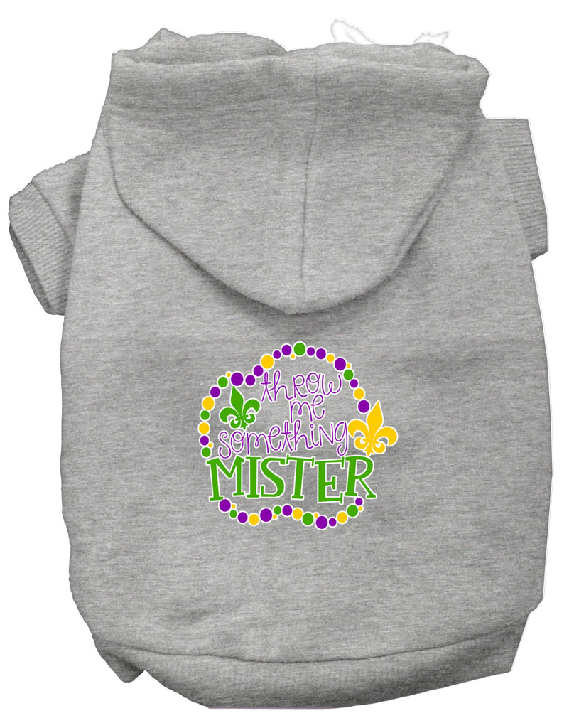 Throw Me Something Screen Print Mardi Gras Dog Hoodie Grey Xl