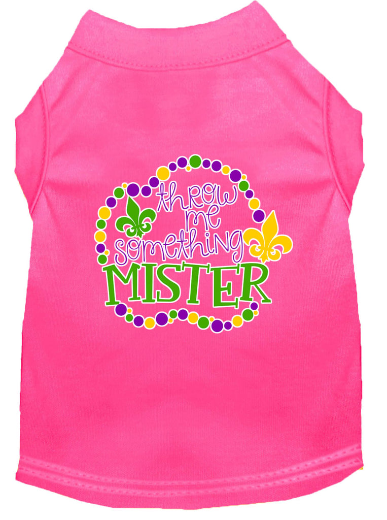 Throw Me Something Screen Print Mardi Gras Dog Shirt Bright Pink Lg