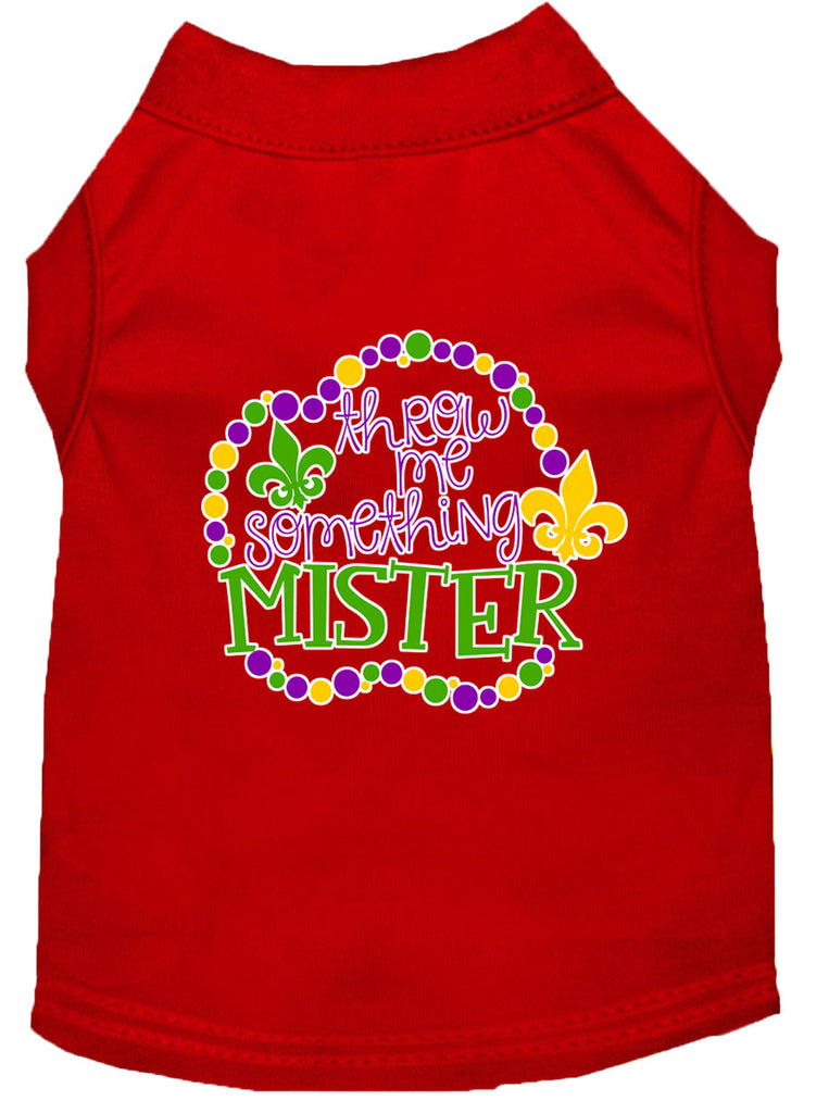 Throw Me Something Screen Print Mardi Gras Dog Shirt Red Lg