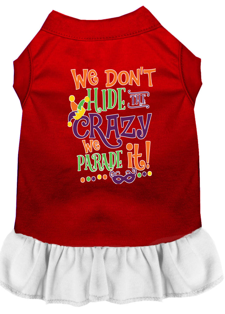 We Don't Hide The Crazy Screen Print Mardi Gras Dog Dress Red With White Med