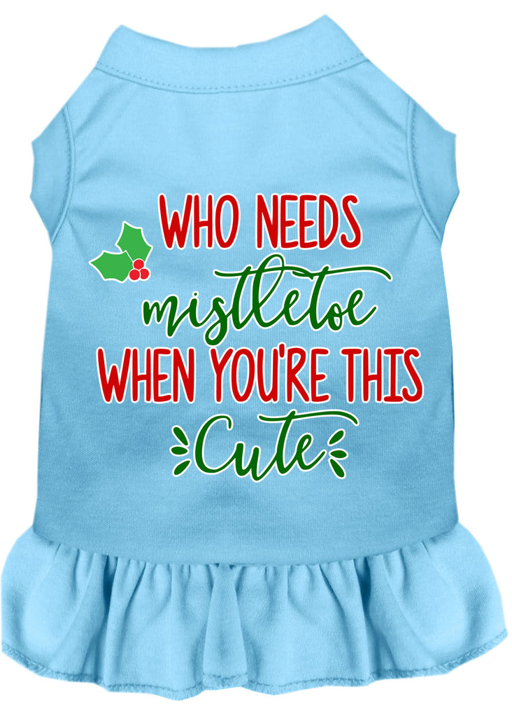 Who Needs Mistletoe Screen Print Dog Dress Baby Blue Xl