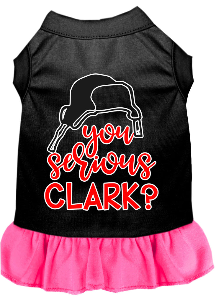You Serious Clark? Screen Print Dog Dress Black With Bright Pink Xs