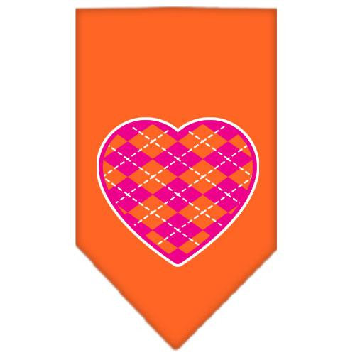 Argyle Heart Pink Screen Print Bandana Orange Small