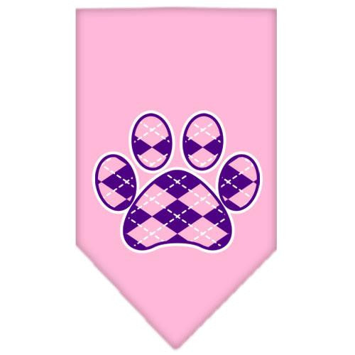 Argyle Paw Purple Screen Print Bandana Light Pink Small