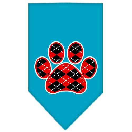 Argyle Paw Red Screen Print Bandana Turquoise Small