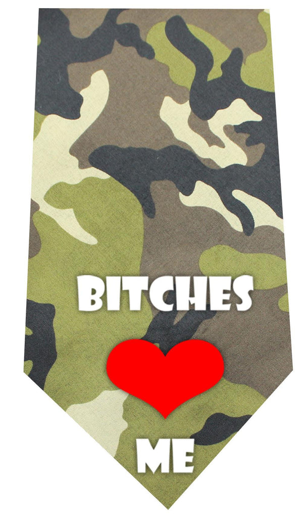 Product Summary : New Pet Products/Screen Print Camo Bandanas/Bitches Love Me Screen Print Bandana@Pet Apparel/Dog Bandanas/Screen Print Camo Bandanas/Bitches Love Me Screen Print Bandana